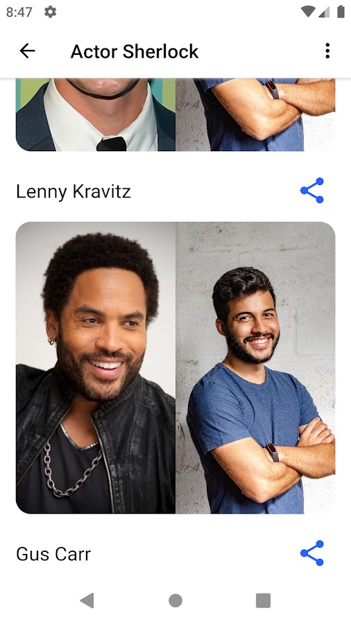 Вас наверно интересует какие знаменитости — актеры похожи на вас, верно? Вы можете узнать это с помощью данного приложения — просто сфотографируйте себя. Можно поделиться результатами сравнения с другими приложениями или сохранить.