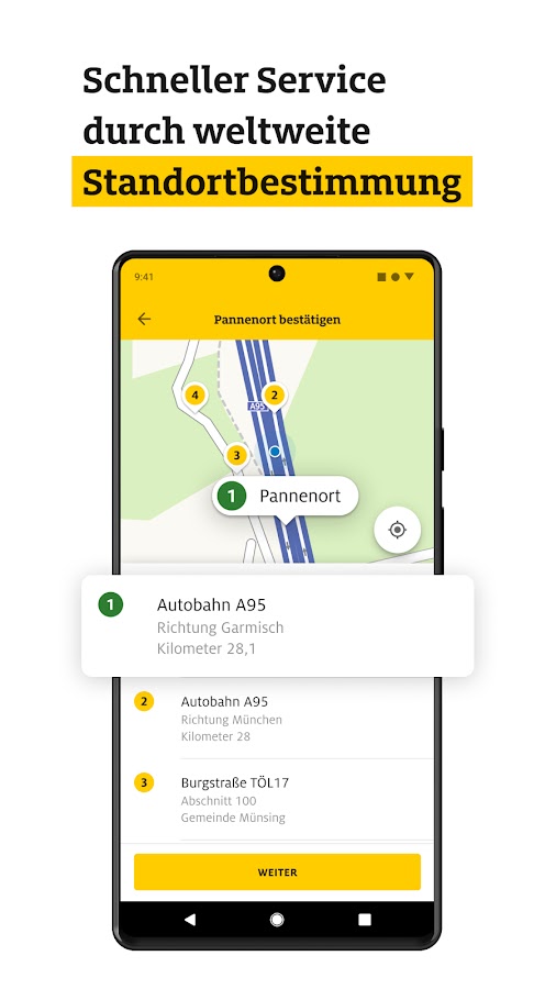 Благодаря функции определения местоположения приложение ADAC для помощи на дороге автоматически определяет место поломки. В случае возникновения чрезвычайной ситуации вся важная информация может быть быстро и легко передана нашим помощникам. После того, как вы запросили помощь, вы будете в курсе текущего статуса заказа с помощью push-сообщений и статусных сообщений. Вы также будете проинформированы об ожидаемом времени ожидания, и у вас будет возможность отслеживать местоположение водителя в режиме реального времени незадолго до прибытия.