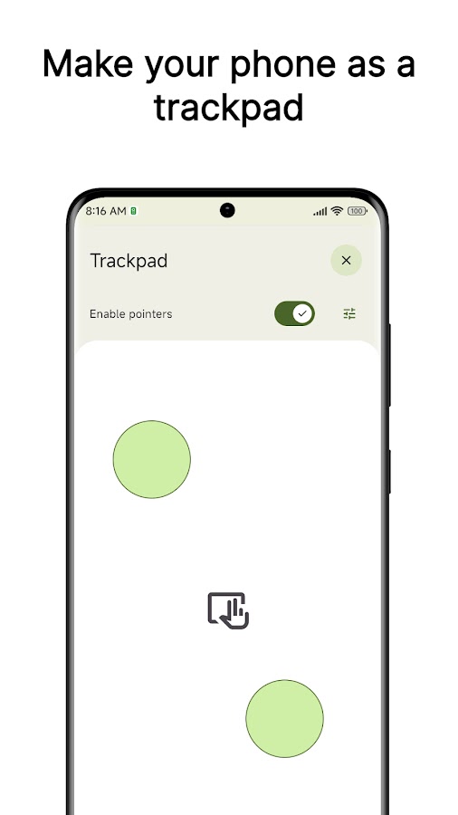 Поддерживает движение курсора, нажатие, прокрутку двумя пальцами и выделение текста.
