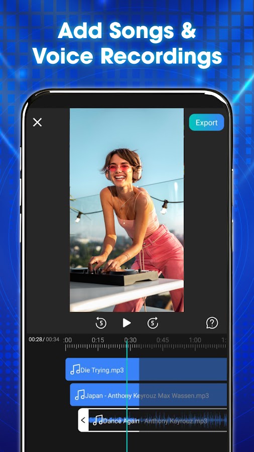 Это приложение поможет вам создавать интересные музыкальные клипы, в которых вы сможете удалять, заменять, добавлять и микшировать любую песню с видео или фото. Получайте больше лайков и просмотров в социальных сетях, добавляя фоновую музыку, снимайте видео, добавляя музыку к фотографиям, любимые песни или с легкостью записывайте свой собственный голос в видео.