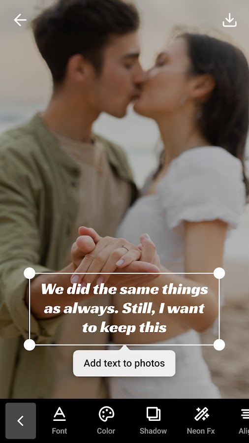 ✅ Добавляйте текст легко: Основная функция – быстрое добавление текста на фото в пару касаний. ✍️