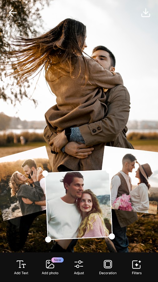 ✅ Коллажи: Создавайте коллаж фото и оригинальные композиции, добавляя несколько изображений из вашей галереи в дизайн.
