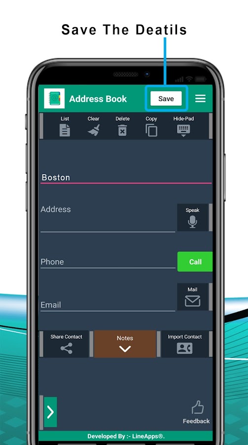 Адресная книга делает сохранить детали!