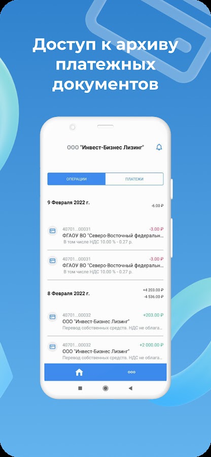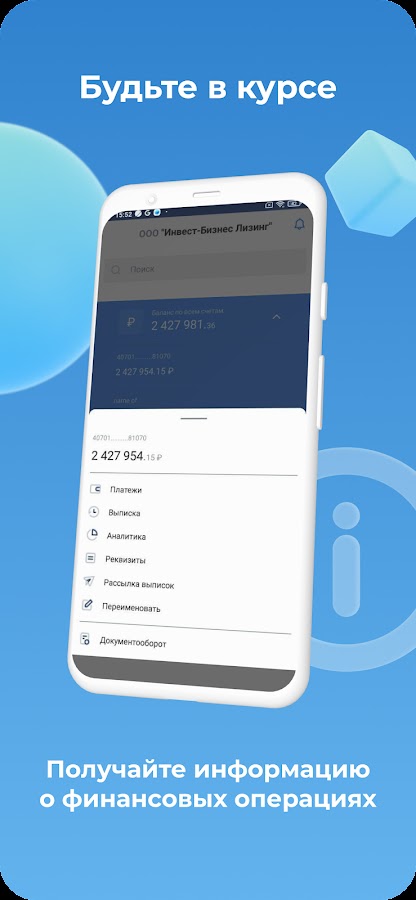 – Просмотр выписки по счетам