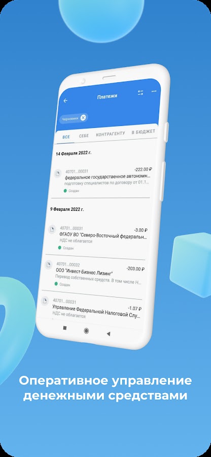 – Создание, подписание и отправка платежных поручений в банк