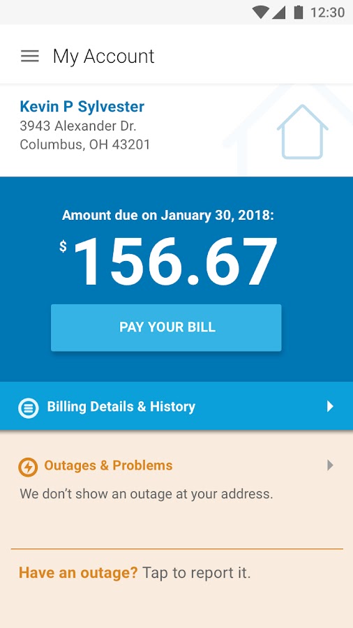 * Вход в приложение AEP Огайо требует активного счета, который зарегистрирован на сайте AEPOhio.com
