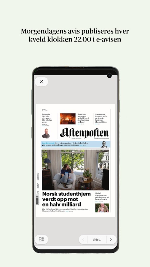 В электронной газете Aftenposten вы найдете цифровое издание современной бумажной газеты – в Интернете, на мобильных устройствах и на планшетах. Завтрашний выпуск выходит каждый вечер в 22:00. Воскресный выпуск Aftenposten можно найти исключительно в электронной газете. Каждый день с понедельника по пятницу Aftenposten Aften также публикуется в электронной газете в 15:00.