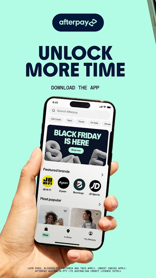 Откройте для себя все возможности Afterpay с помощью приложения.