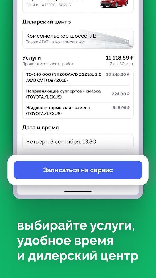 — Записаться на сервис выбрав работы и удобное время для посещения дилерского центра.