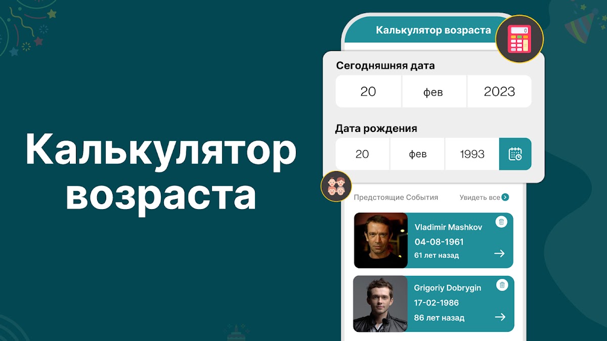 калькулятор возраста дата рождения используются стильные поздравления