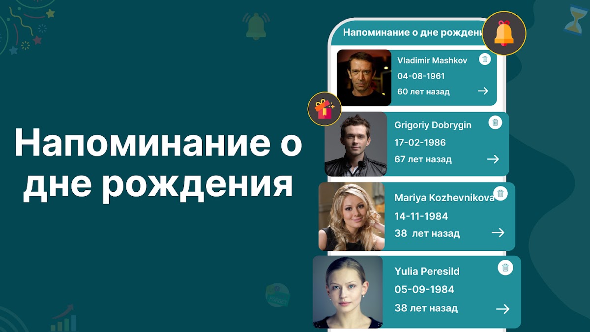 — Никогда не забывайте еще один день рождения с нашим удобным напоминанием о дне рождения — сколько мне лет