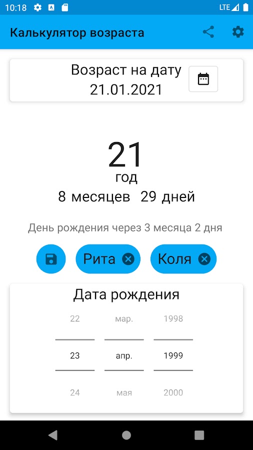 Скачайте приложение Возраст калькулятор для Android бесплатно - последняя версия (1.22.4) уже доступна для установки на ваш телефон или планшет.