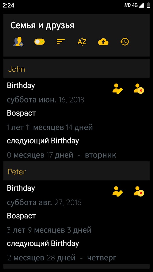 ✓ Показывает, сколько месяцев и дней осталось до вашего следующего дня рождения.