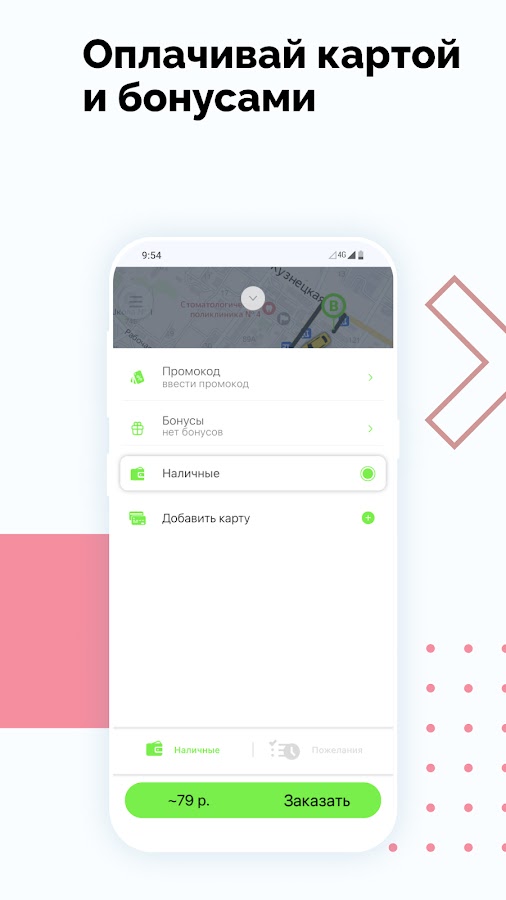 Банковской картой, через Google Pay, Apple Pay, бонусами или наличными — воспользуйся любым из способов.