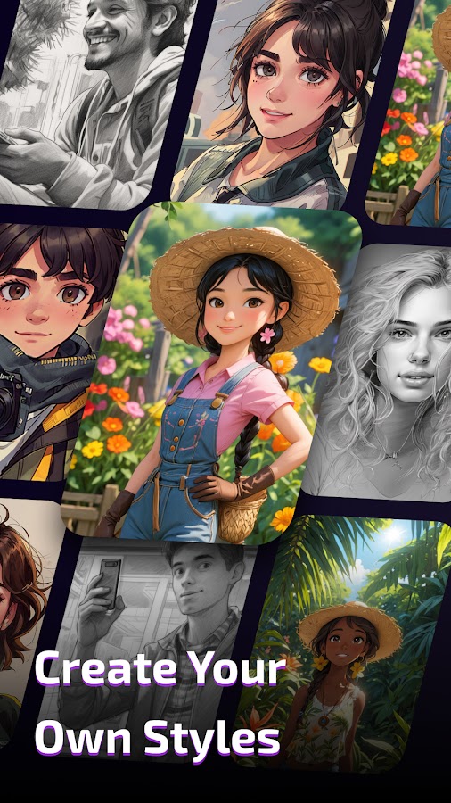 Выберите свой любимый стиль: аниме, эскиз или мультфильм.