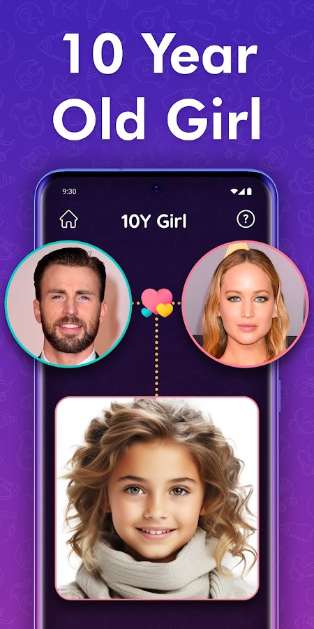 *Предсказывает, как будет выглядеть ваш ребенок** (ребенок по фото) с учетом ваших черт лица, цвета волос, глаз и других факторов. ♀️