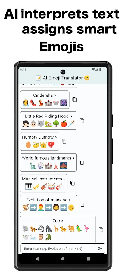 Скачайте приложение Переводчик эмодзи для Android бесплатно - последняя версия (1.1.0) уже доступна для установки на ваш телефон или планшет.