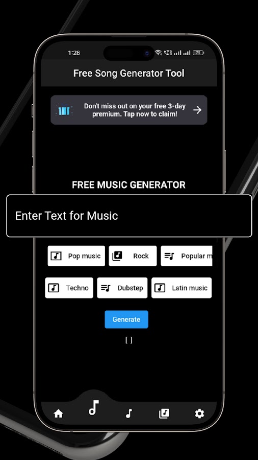 ▶ Приложение простое в использовании и удобное для пользователя. Просто откройте приложение и введите тему, которую хотите создать. Вы также можете выбрать шаблоны и нажать кнопку «Спросить AI». он автоматически сгенерирует мелодию для вас.