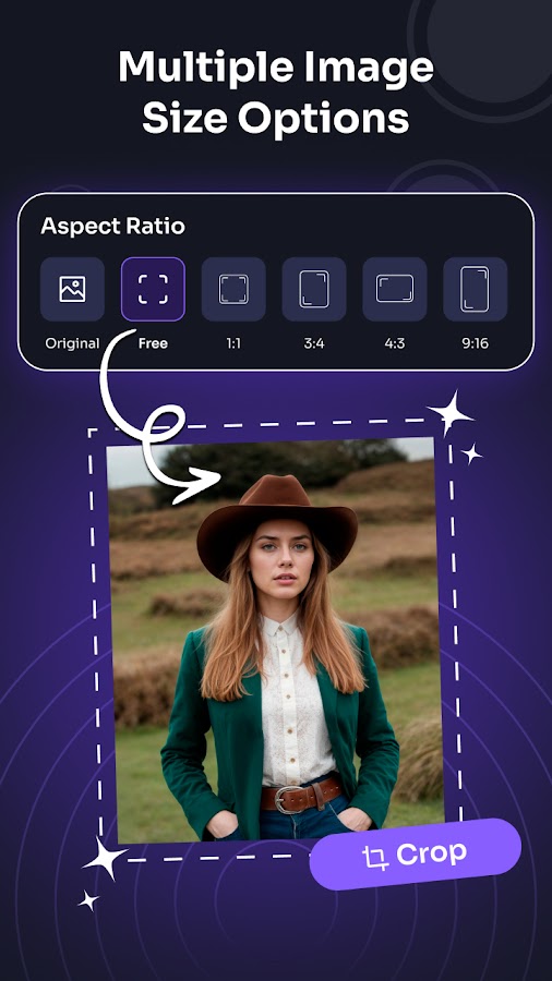 # Пользователи должны выбрать конкретный размер изображения, например квадрат, 3: 4,4: 3,9: 16, 16: 9, 7: 5, свободный, круг и квадрат круга