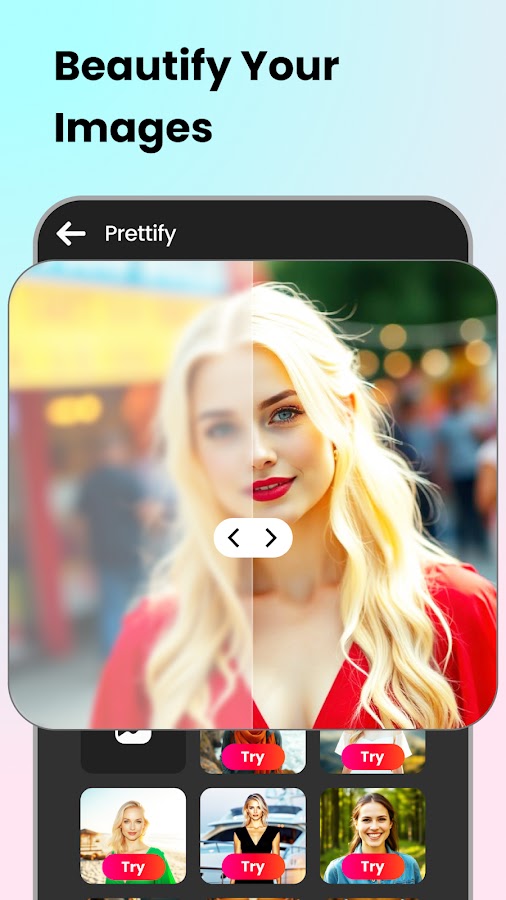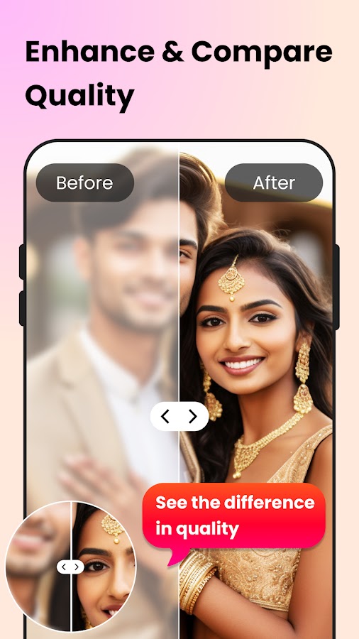 📌 Загрузите сейчас и мгновенно улучшите свои фотографии! Испытайте возможности редактирования фотографий с помощью искусственного интеллекта. Одним касанием вы можете восстановить, улучшить и масштабировать изображения до совершенства. Исправляете ли вы старые фотографии, улучшаете селфи или создаете профессиональные изображения, это приложение сделает все это.