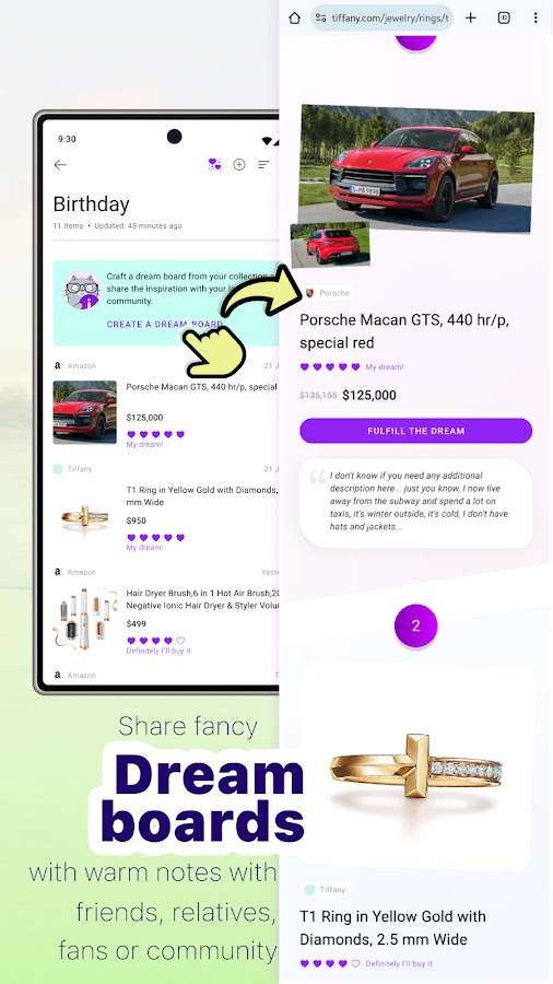 🖪💭 Легко сохраняйте свои желания с любого веб-сайта или мобильного приложения. Мы часто просматриваем онлайн-магазины просто ради удовольствия или для покупки позже. Wisher будет вашим отличным помощником в этом приятном занятии.
