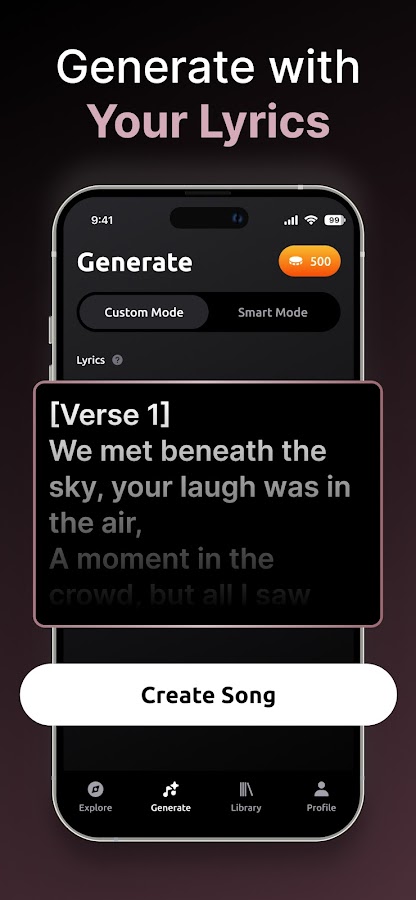 • Полный творческий контроль — редактируйте тексты песен, настраивайте стиль, персонализируйте все