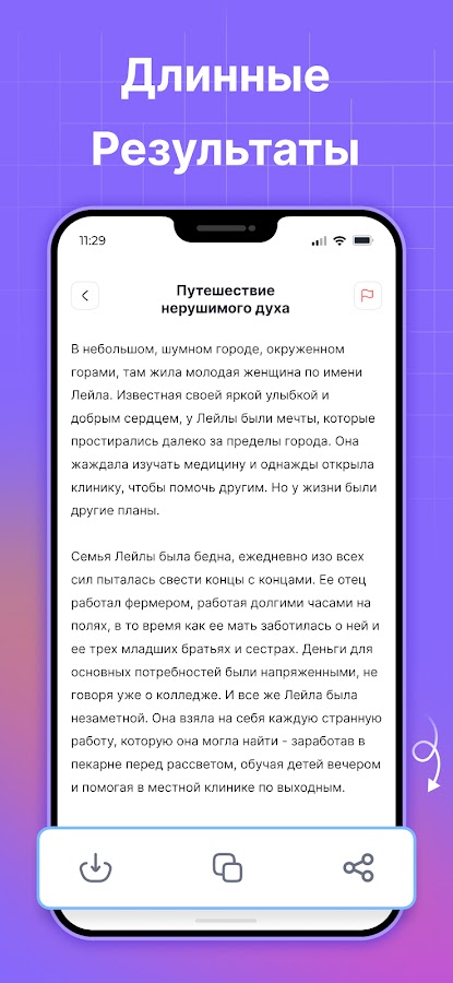 Наше приложение для создания рассказов работает очень быстро. Независимо от того, насколько креативен или сложен ваш запрос, оно может предоставить рассказ за несколько секунд.