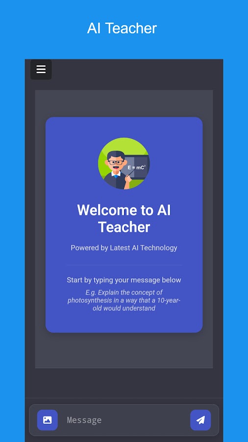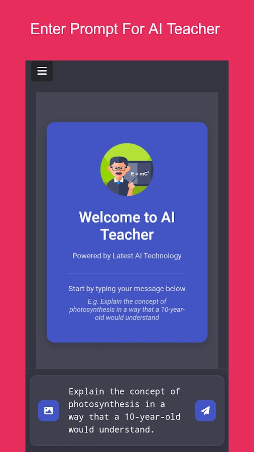 Измените способ обучения с помощью AI Teacher, вашего идеального персонализированного помощника в обучении. Независимо от того, являетесь ли вы студентом, профессионалом или учитесь всю жизнь, это приложение создано для того, чтобы упростить сложные концепции и сделать обучение увлекательным и доступным для всех.