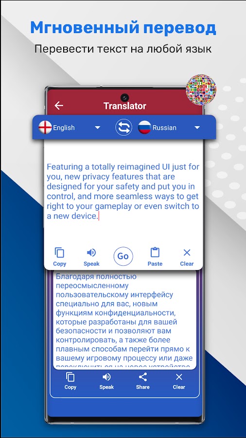 Это новая эра бесплатного онлайн переводчик текстов и голосовых языков, недавно созданное приложение для экранного переводчик англо русский для всех языков легко отображает описание переводчик по фото, фотопереводчик и полные абзацы для вас.