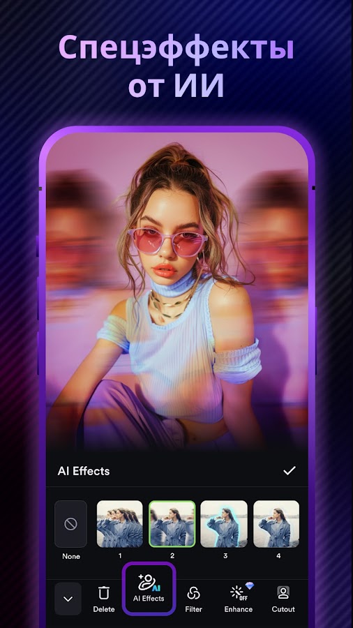 — Добавляйте модные эффекты Glitch/VHS и красивые фильтры