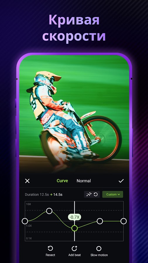 — Ускорить или замедлить видео.
