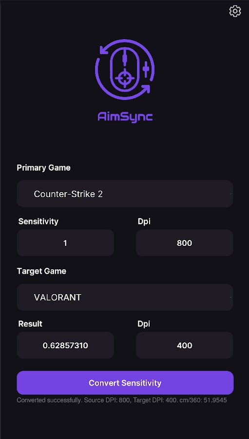 🔄 Конвертер чувствительности для разных игр: мгновенно преобразуйте настройки чувствительности между популярными играми FPS.