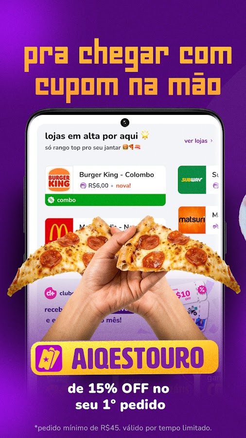 Не знаете, есть ли в вашем городе aiqfome? Посетите aiqfome.com/fominhas, чтобы узнать, какие рестораны и магазины ждут вас в приложении.