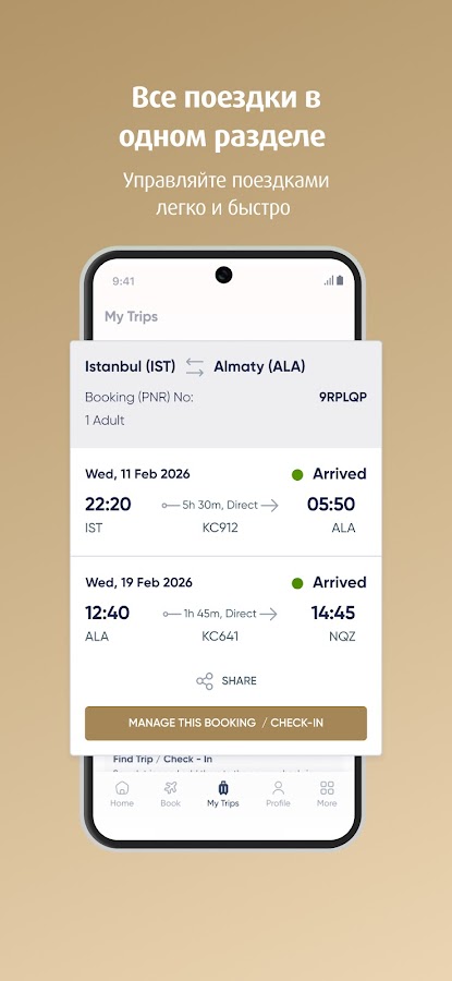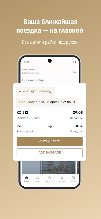 • Быстрый доступ к предстоящим перелётам