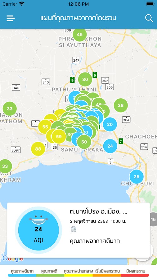 Отчеты о применении качества воздуха тайца индекса. Почасовой отчет (некоторые станции) и данных ежедневно. Существует 7 дней качество воздуха графики и карты, а данные из станций наблюдения за PCD вокруг Таиланда. Для распространения информации среди широкой общественности. Особенно во время дымки кризисную ситуацию в северной и южной части Таиланда.