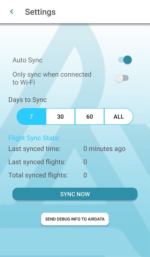 Автоматическая синхронизация (резервное копирование журнала полетов) для: