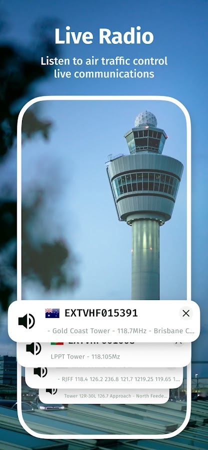 • Безлимитный доступ к радиопереговорам диспетчеров (Tower)
