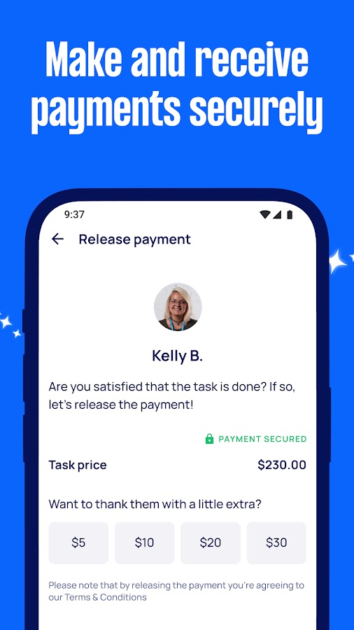 Оплата задания сортируется, когда предложение принимается и удерживается надежно, пока задача не будет выполнена. Таким образом, оба плаката и Taskers могут быть уверены, что оплата будет готова, и задача может быть выполнена без колебаний !.