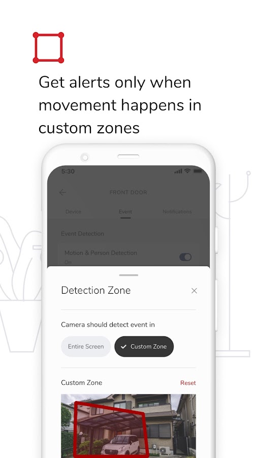• Создайте настраиваемую зону периметра, чтобы получать оповещения только в выбранной вами области.