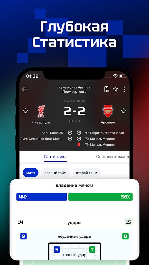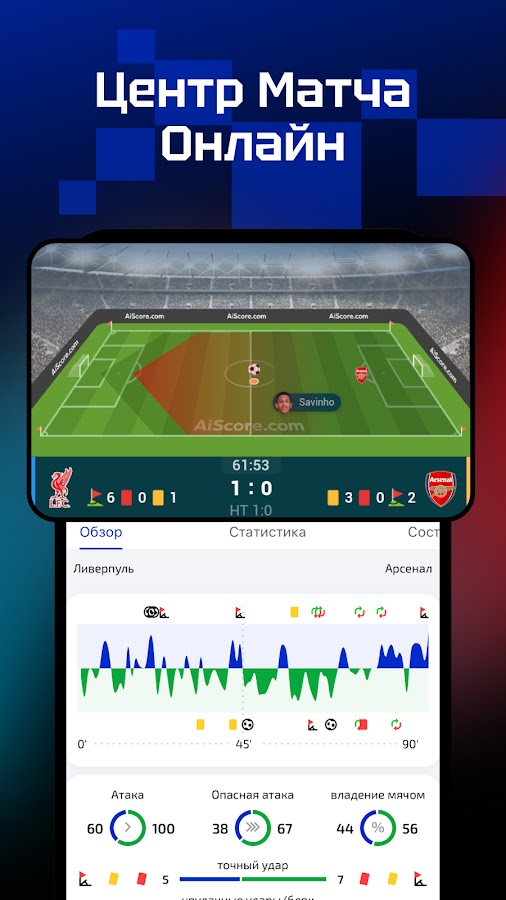* Реалтайм—в любое время можно познать все новейшие счёты и результаты несколько тысячи спортивных соревнований. Каждые данные понятны с одного взгляда. Только нужно кликать стороны соревнования, вы можете получить статистика, составы команд,H2H, реальные мультипликациии.