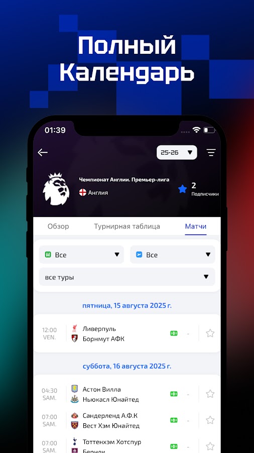 * все игры— обоновлять все игры сегодня в реальное время, вы ещё можете опросить информации о соревнованиях в тот день с помощью календаря.