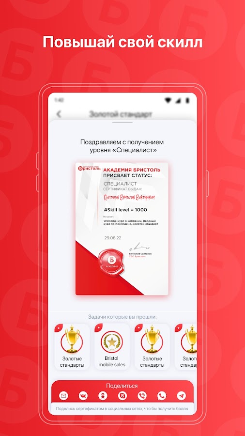 «Бристоль академия» позволяет компании обучать персонал в режиме онлайн на федеральном уровне, как уже имеющихся сотрудников, так и новичков, которые недавно устроились в компанию. Для работы всего коллектива, платформа является настоящим генератором корпоративных знаний и помогает организовать рабочий процесс с максимальной пользой для всей корпорации.