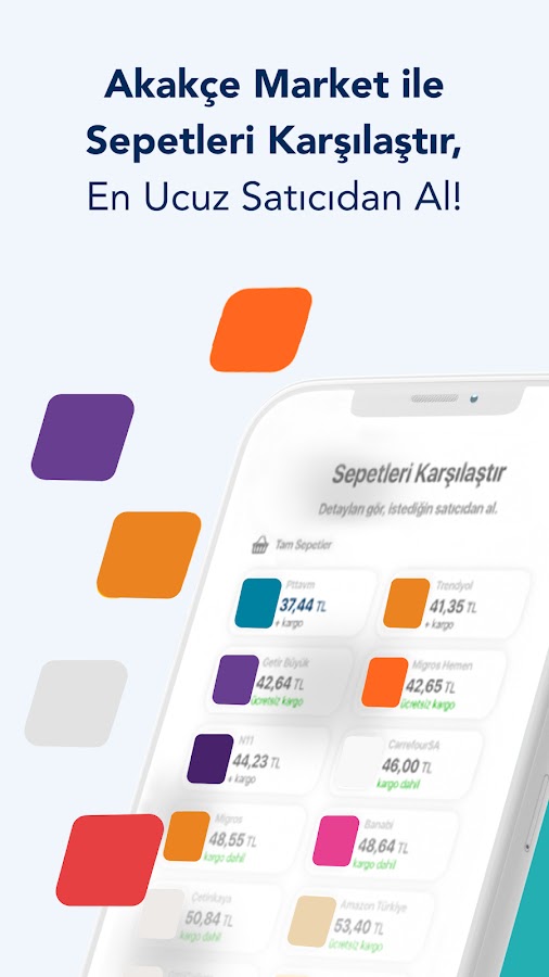 С Akakçe, первой в Турции платформой сравнения цен, вы можете легко сравнивать цены на интернет-магазинах и в магазинах перед покупкой. Отслеживайте цены, чтобы быть в курсе скидок и получать мгновенные уведомления о специальных предложениях, таких как «Чёрная пятница» и «11.11». С 2000 года у вас под рукой самые свежие каталоги Bim, A101 и Şok, а также цены тысяч розничных продавцов. С Akakçe Market вы можете найти самую выгодную корзину покупок, сравнить товары, просмотреть ежедневные предложения, сезонные акции и скидки «Чёрной пятницы» — всё на одном экране и насладиться отличным шопингом.