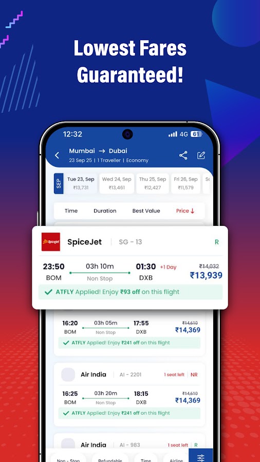 ● Выбирайте из лучших авиакомпаний, таких как Air India, IndiGo, Akasa Air, Emirates, Lufthansa и других.