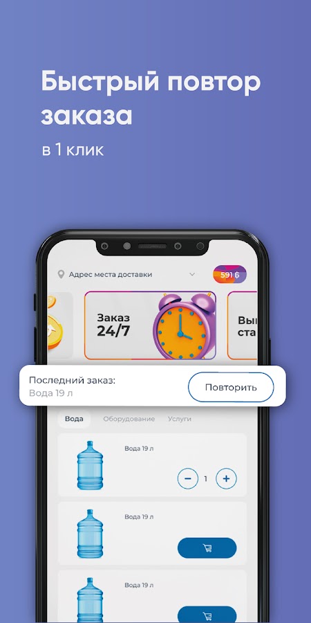 Скачайте бесплатное приложение на телефон и заказывайте чистую воду в удобное время!