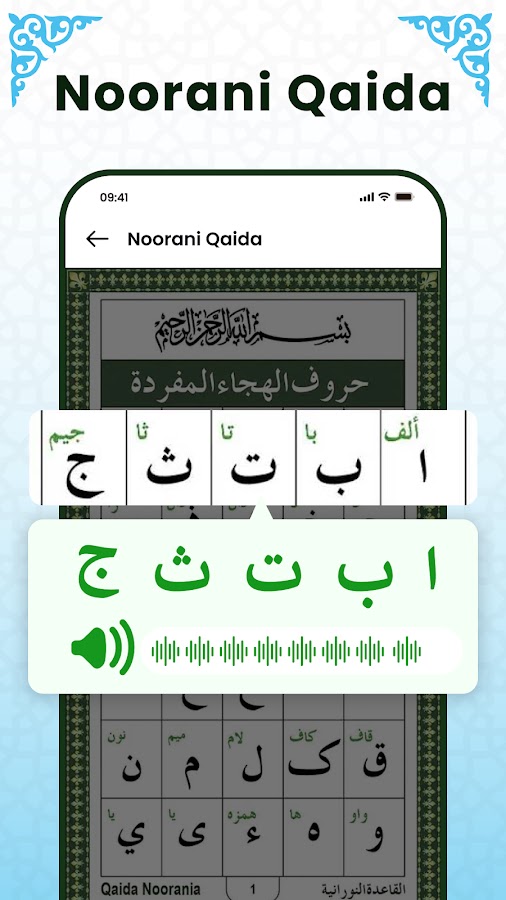 Приложение Hafizi Quran 15 Lines Per Page предлагает специальную функцию для начинающих, чтобы изучить основы Корана Маджид. Приложение Noorani Qaida in Hafizi Quran предназначено для обучения начинающих правильному произношению и чтению арабских букв и слов для точного чтения قرآن الكريم.