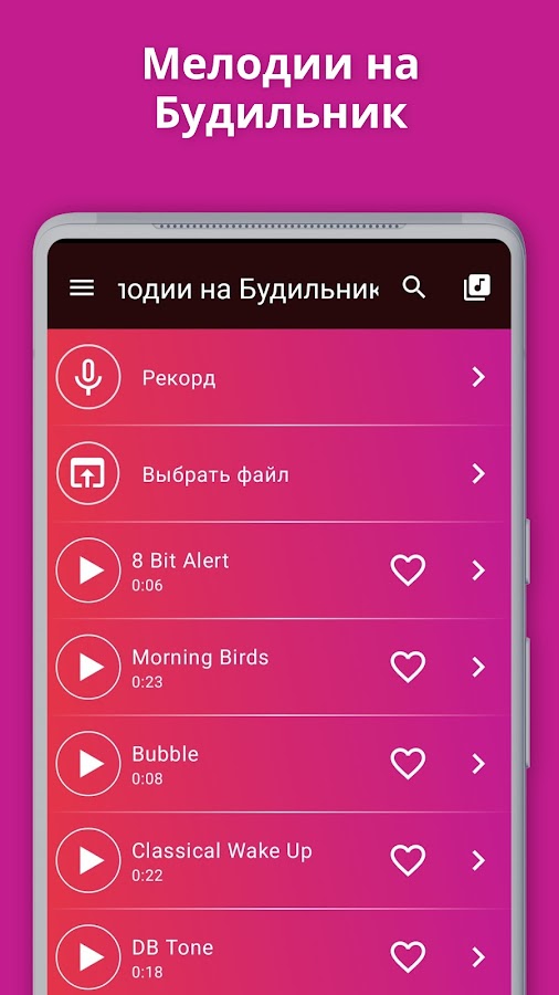 Получить Мелодии на Будильник Бесплатно — Звуки Будильника приложение Андроид теперь; если вам нужно громкие рингтоны для будильника разбудить вас, и вы хотите установить музыка на будильник как рингтоны на будильник бесплатно на вашем телефон Андроид, то это именно то, что вам нужно мелодии будильник приложение ! В этом приложение Андроид вы найдете музыка и звуки, которые вы можете установить как рингтоны на будильник на Андроид.
