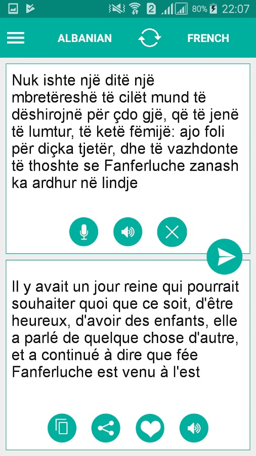 Бонусная функция — Изучите и освойте произношение, поскольку албанский французский переводчик имеет встроенную аудиофункцию. Слушайте переведенный текст и удобно общайтесь с друзьями, подругами, парнями, членами семьи или туристами.