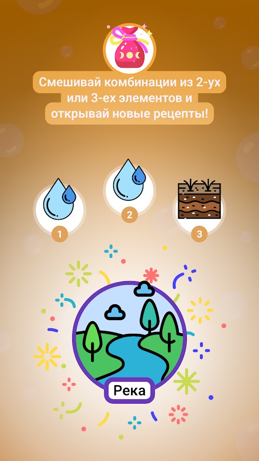 Смешивай элементы, открывай новые комбинации и создавай удивительный мир с нуля.