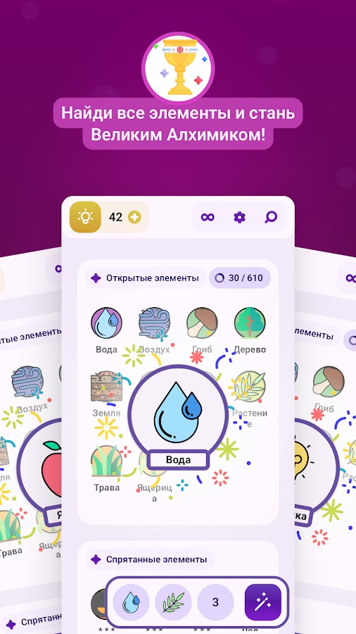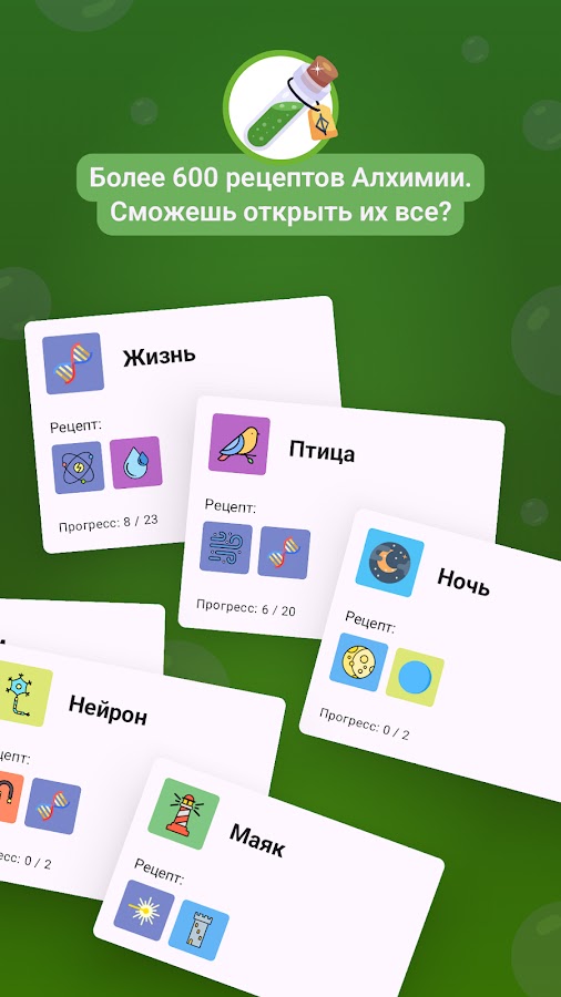 • Смешивай элементы и открывай сотни уникальных комбинаций